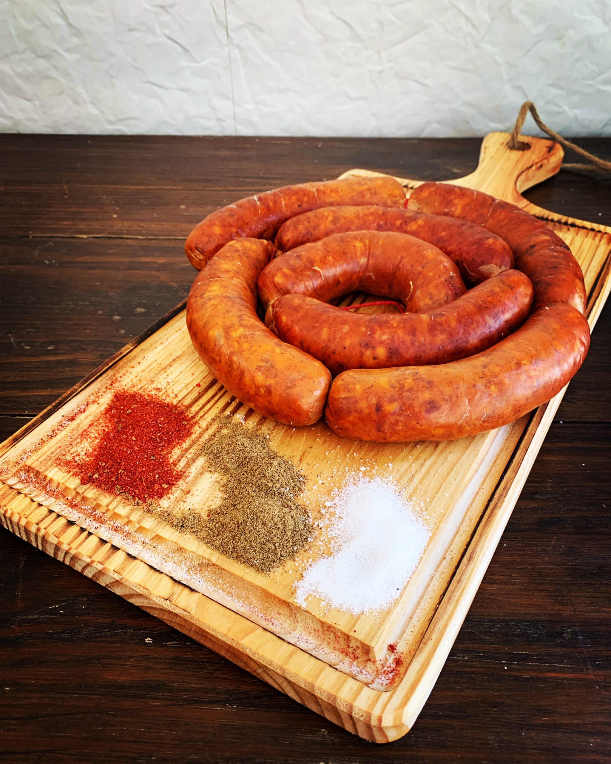 Chorizo elaborado de forma tradicional con la mejor selección de magros tanto de cerdo ibérico y como de vacuno. Aliñado con la receta antigua de nuestro pueblo. Ideal para la parrilla, freir, o cocinar para guiso.