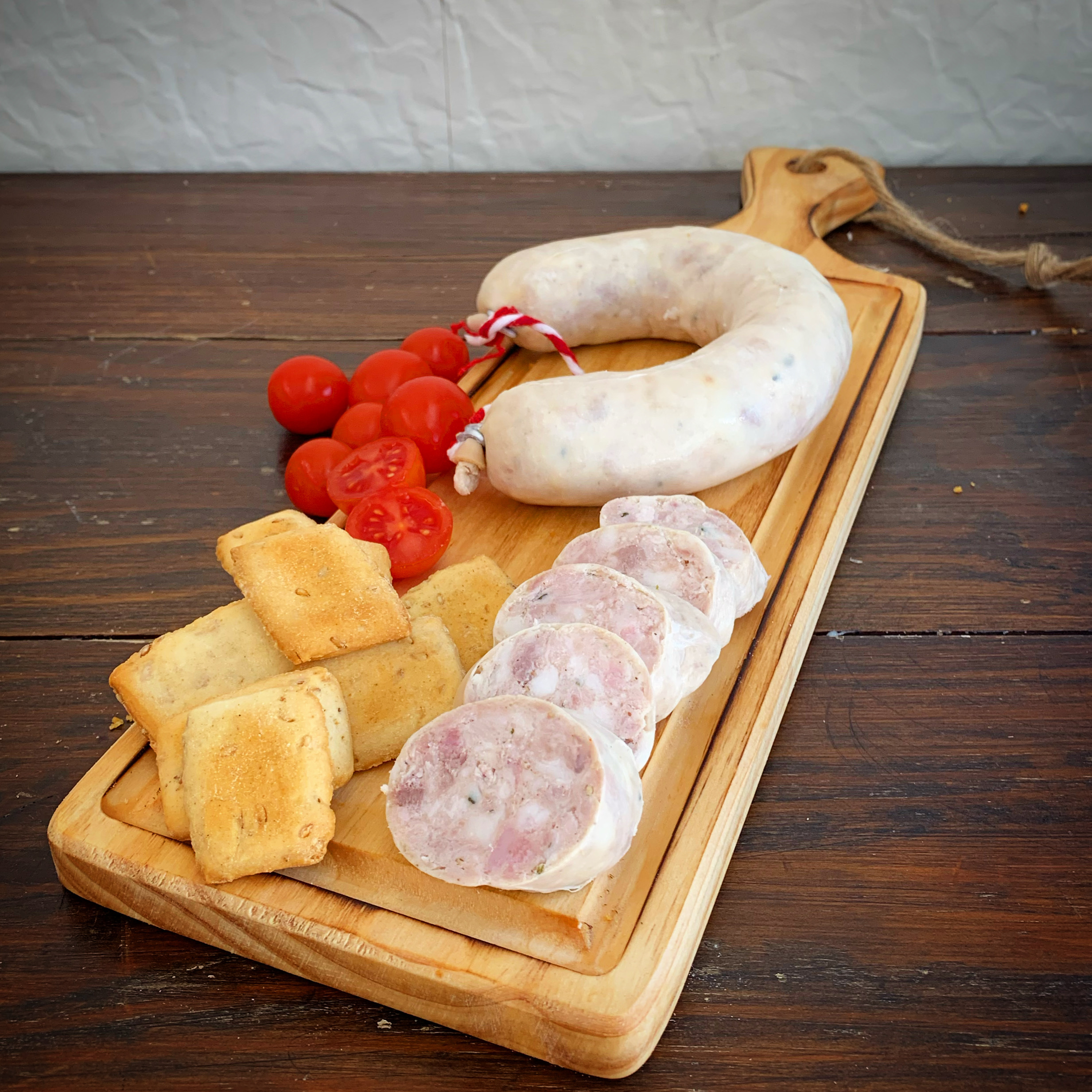 Un embutido muy apreciado en Granada. Este producto típico de nuestra tierra se elabora a base de paletilla, cabezada y tocino de cerdo ibérico. Con especias naturales molidas directemente en nuestro obrador.